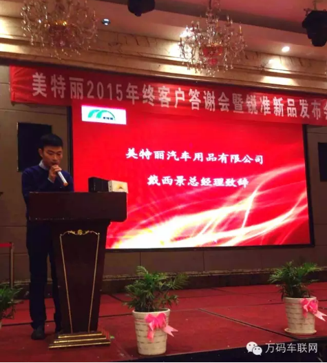 在随后的晚宴中,美特丽汽车用品有限公司董事长戴欣荣先生发表了致辞。他表示,作为与锐准品牌合作多年的“老人”,锐准品牌一直以来以引领市场潮流而闻名。随着体验更好、市场响应更热烈的锐准大屏智能云后视镜的上市,必将在整个汽电品市场再次掀起更强烈的销售狂潮。这不但是美特丽汽车用品的契机,也是整个江西汽电品行业的契机。感谢各位与会者的莅临,也相信在即将到来的2016年,锐准品牌、美特丽汽车用品有限公司一定会同各位合作伙伴一道戮力同心、同心同德,共创更瑰丽辉煌!